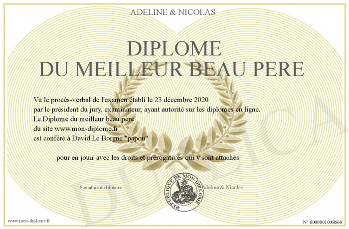 Envoyez par email votre Diplôme du meilleur beau père personalisé