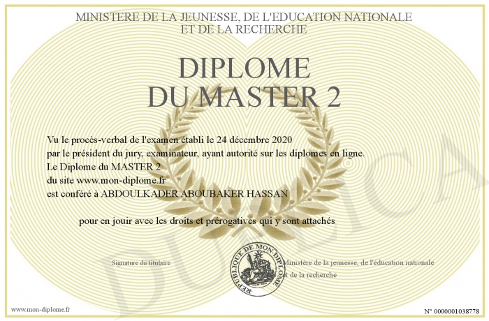 Envoyez par email votre Diplôme du MASTER 2 personalisé