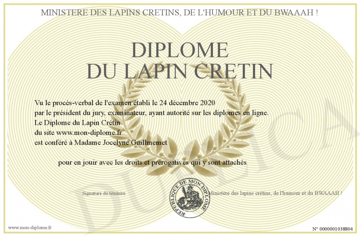 Envoyez par email votre Diplôme du Lapin Crétin personalisé