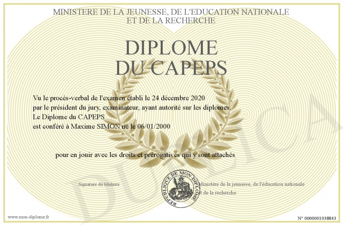 Envoyez par email votre Diplôme du CAPEPS personalisé