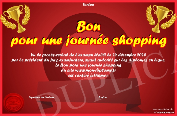Envoyez par email votre Bon pour une journée shopping personalisé