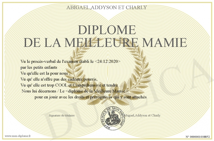 Envoyez par email votre Diplôme de la Meilleure Mamie personalisé