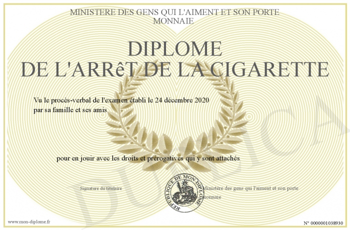 Envoyez par email votre Diplôme de l'arrêt de la cigarette personalisé