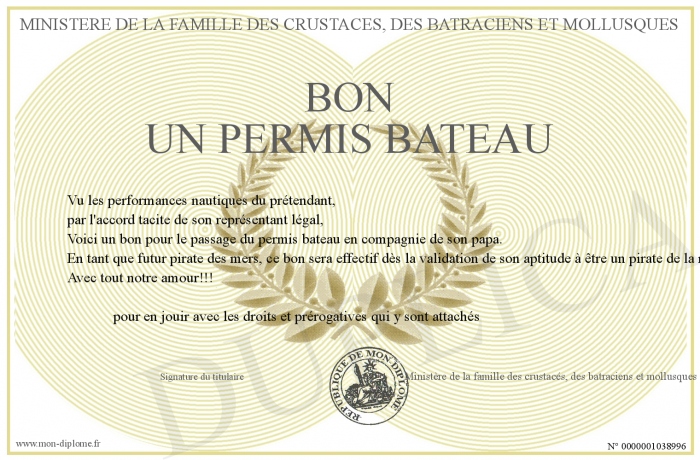 Envoyez par email votre BON UN PERMIS BATEAU personalisé