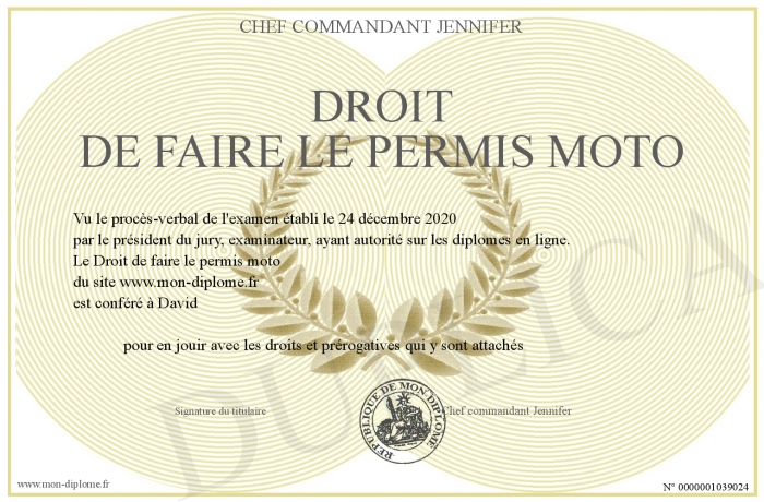Envoyez par email votre Droit de faire le permis moto personalisé