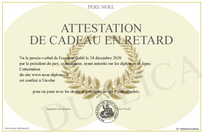 Envoyez par email votre Attestation de cadeau en retard personalisé