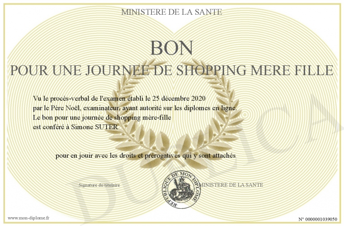 Envoyez par email votre BON POUR UNE JOURNEE DE SHOPPING MERE FILLE personalisé