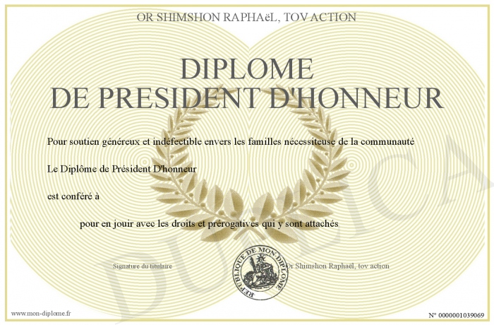 Envoyez par email votre Diplôme de président d'honneur personalisé