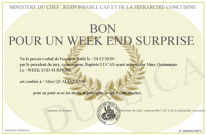 Envoyez par email votre BON POUR UN WEEK END SURPRISE personalisé