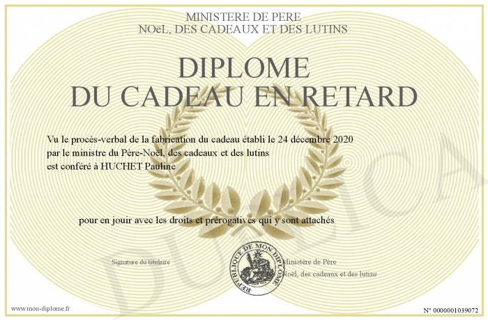 Envoyez par email votre Diplôme du cadeau en retard personalisé