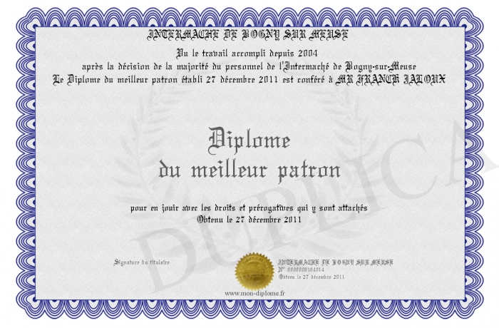 Envoyez par email votre Diplome du meilleur patron personalisé