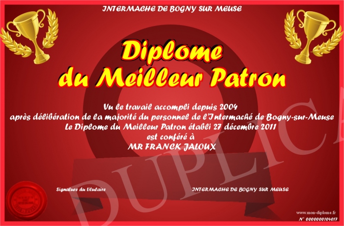 Envoyez par email votre Diplôme du Meilleur Patron personalisé