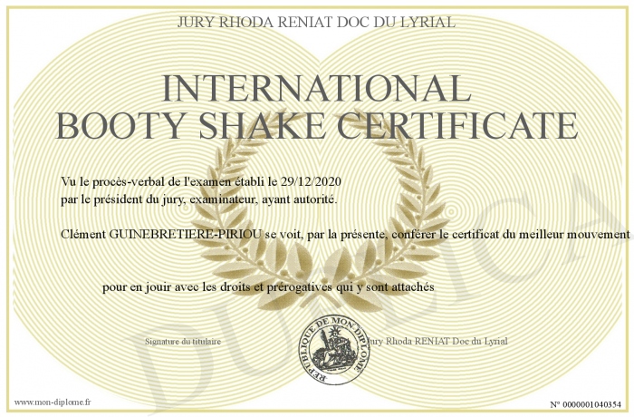 Envoyez par email votre INTERNATIONAL BOOTY SHAKE CERTIFICATE personalisé