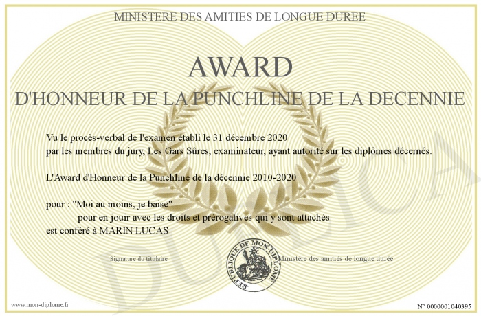 Envoyez par email votre Award d'honneur de la punchline de la décennie personalisé
