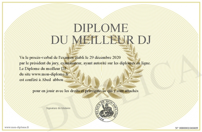 Envoyez par email votre Diplôme du meilleur DJ personalisé
