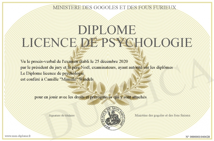 Envoyez par email votre Diplôme licence de psychologie personalisé