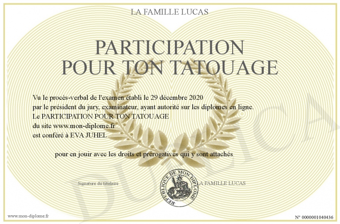 Envoyez par email votre PARTICIPATION POUR TON TATOUAGE personalisé