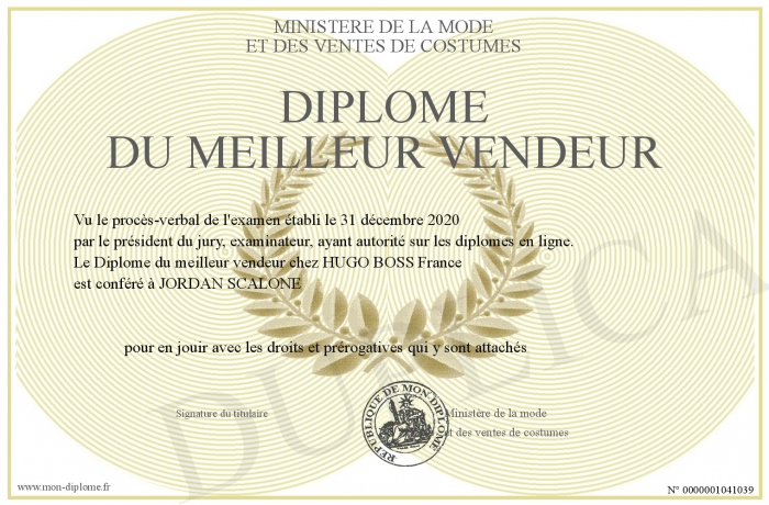 Envoyez par email votre Diplôme du meilleur vendeur personalisé