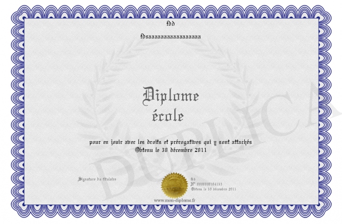 Envoyez par email votre Diplôme école personalisé
