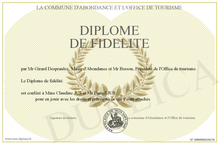 Envoyez par email votre Diplôme de fidélité personalisé