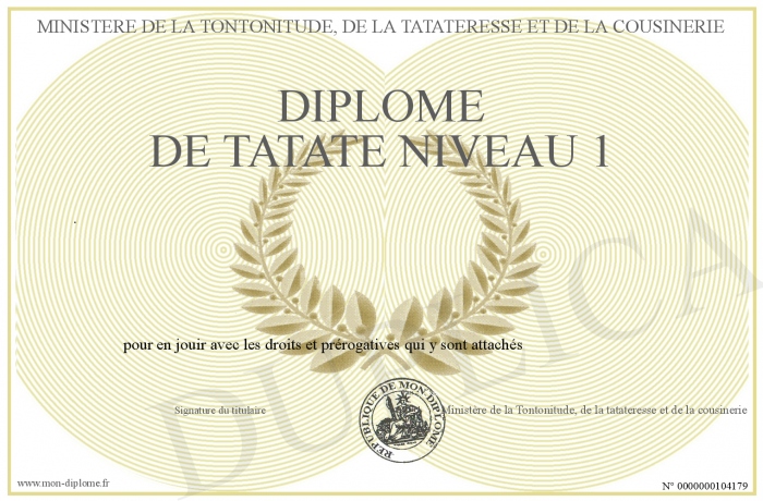 Envoyez par email votre Diplôme de Tatate Niveau 1 personalisé