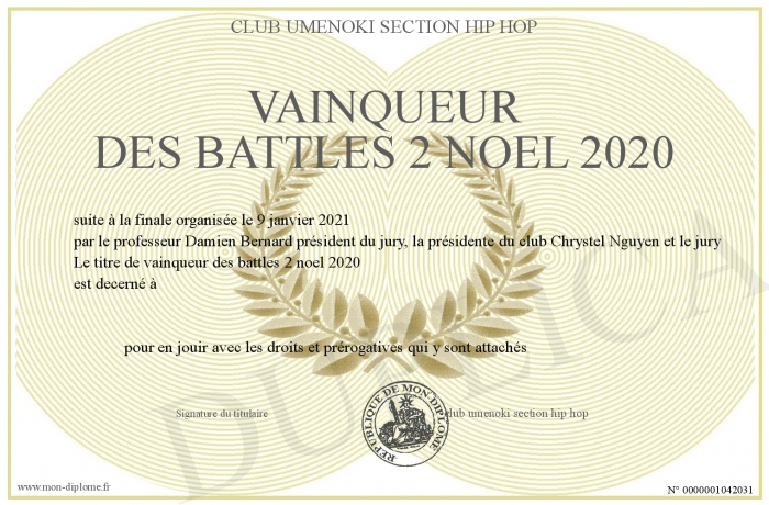 Envoyez par email votre vainqueur des battles 2 noel 2020 personalisé