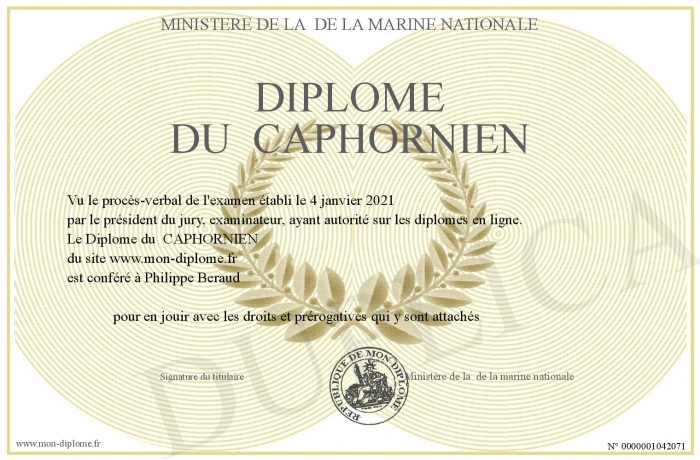 Envoyez par email votre Diplôme du CAPHORNIEN personalisé