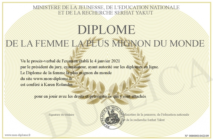 Envoyez par email votre Diplôme de la femme la plus mignon du monde personalisé