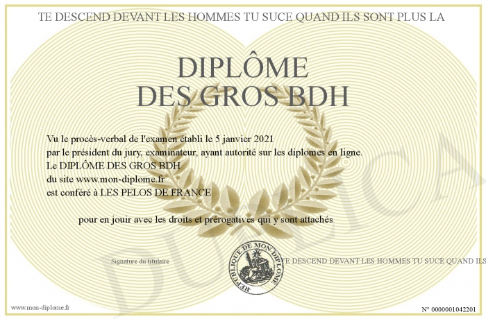 Envoyez par email votre DIPLÔME DES GROS BDH personalisé