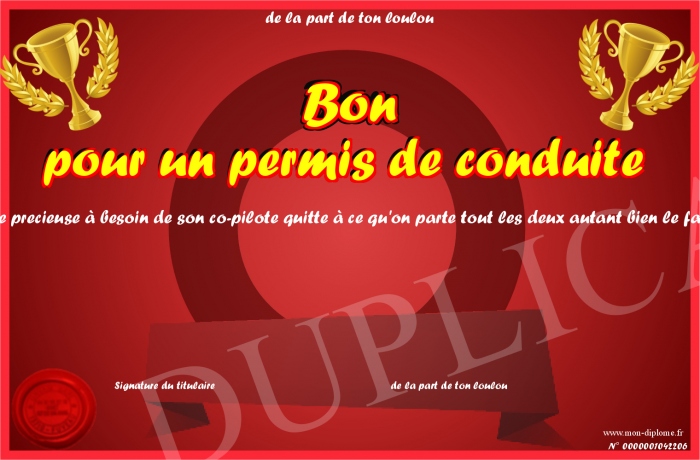 Envoyez par email votre Bon pour un permis de conduite personalisé