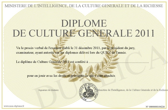 Envoyez par email votre Diplôme de Culture Générale 2011 personalisé