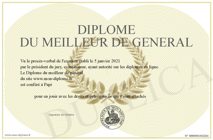 Envoyez par email votre Diplôme du meilleur de général personalisé