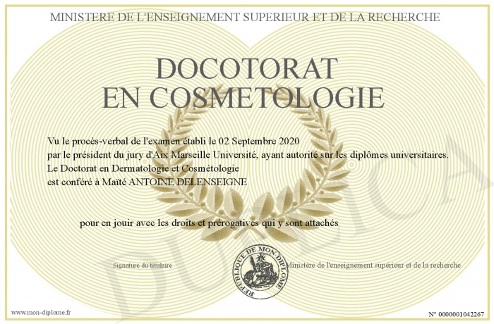 Envoyez par email votre docotorat en cosmétologie personalisé