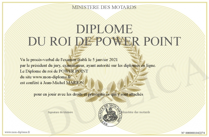 Envoyez par email votre Diplôme du roi de POWER POINT personalisé