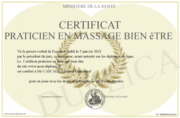 Envoyez par email votre Certificat praticien en massage bien être personalisé