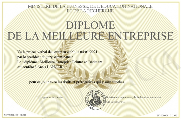 Envoyez par email votre Diplôme de la Meilleure Entreprise personalisé