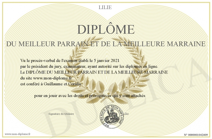 Envoyez par email votre DIPLÔME DU MEILLEUR PARRAIN ET DE LA MEILLEURE MARRAINE personalisé