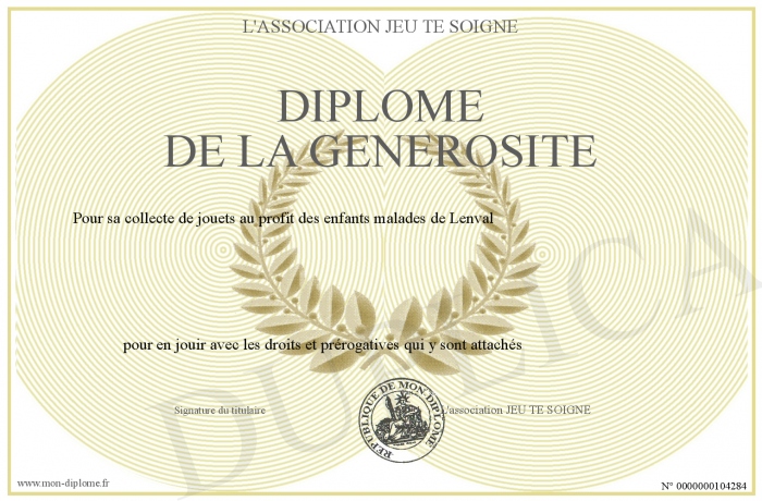 Envoyez par email votre Diplome de la générosite personalisé