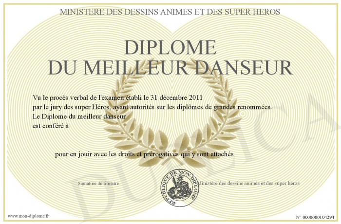 Envoyez par email votre Diplôme du meilleur danseur personalisé