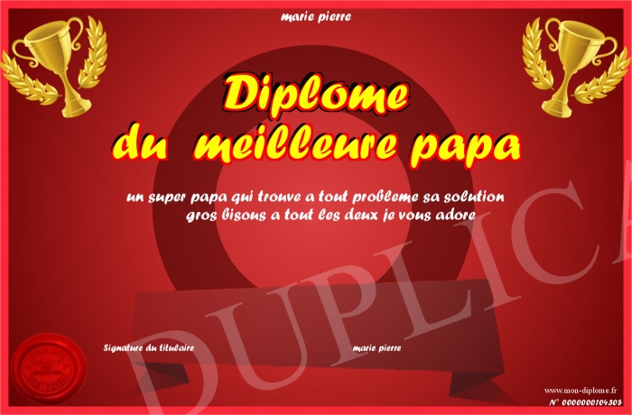 Envoyez par email votre Diplome du meilleure papa personalisé
