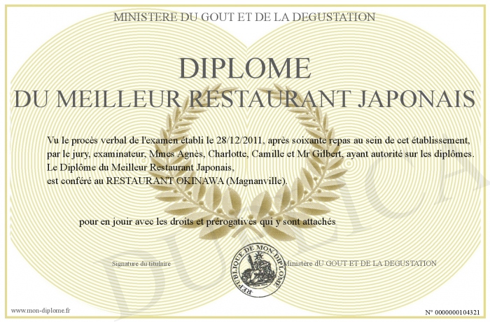 Envoyez par email votre Diplôme du MEILLEUR RESTAURANT JAPONAIS personalisé
