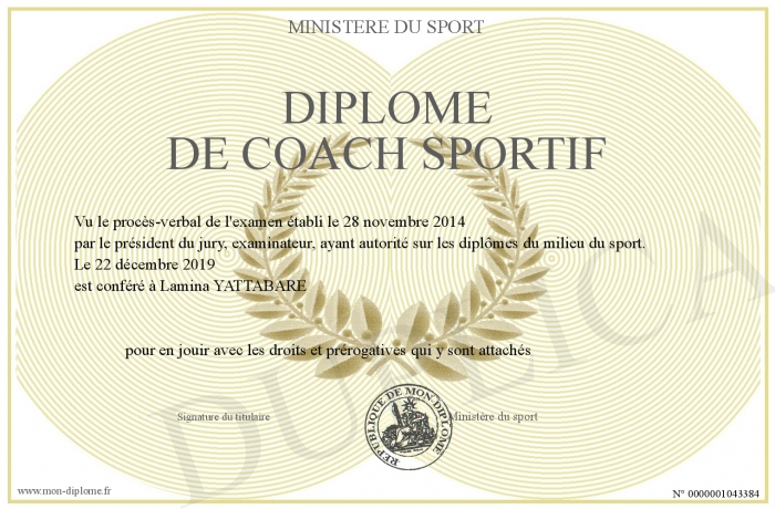 Envoyez par email votre Diplôme de Coach sportif personalisé