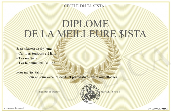 Envoyez par email votre Diplome de la meilleure $ista personalisé