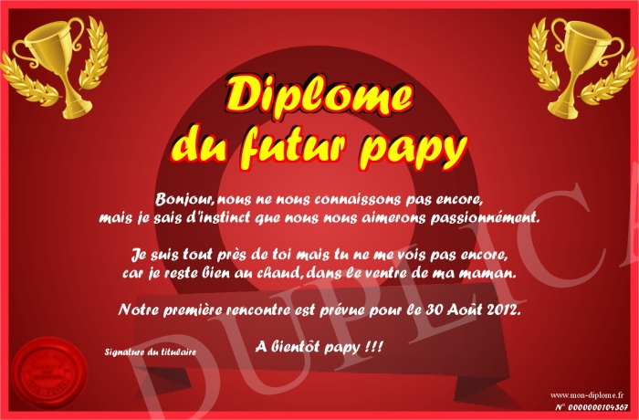 Envoyez par email votre Diplôme du futur papy personalisé