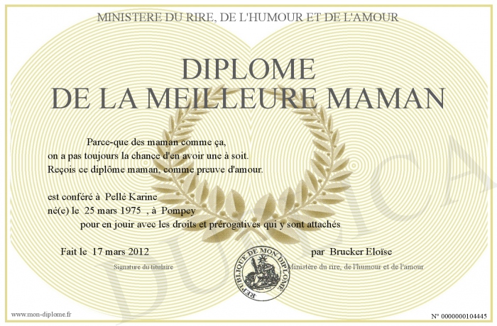 Envoyez par email votre Diplome de la meilleure Maman personalisé