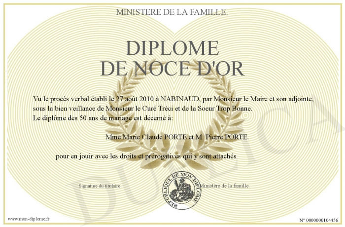 Envoyez par email votre Diplôme de noce d'or personalisé