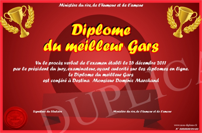 Envoyez par email votre Diplome du meilleur Gars personalisé