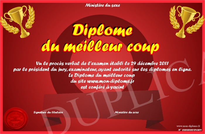 Envoyez par email votre Diplôme du meilleur coup personalisé