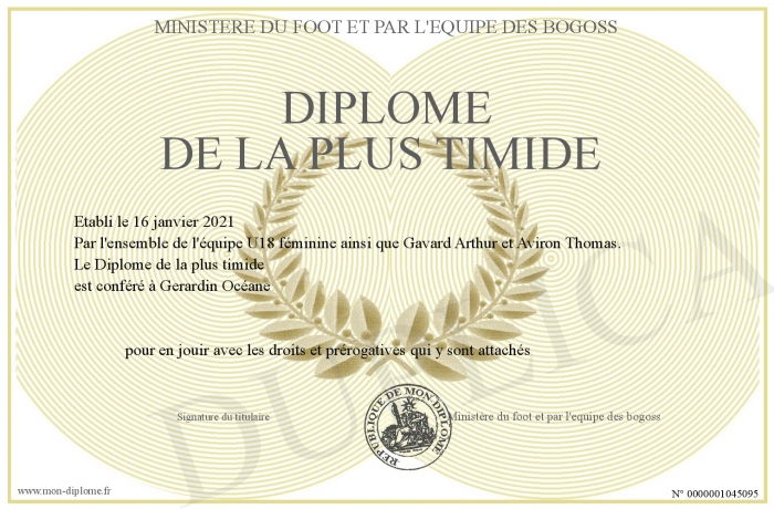 Envoyez par email votre Diplôme de la plus timide personalisé