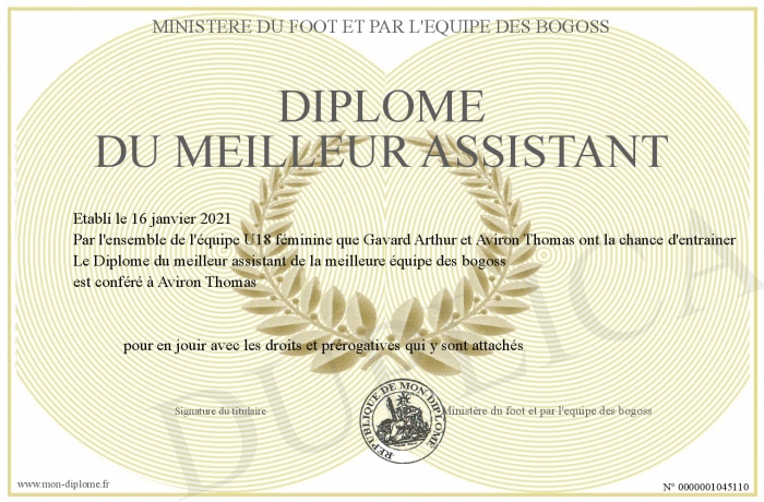 Envoyez par email votre Diplôme du meilleur assistant personalisé